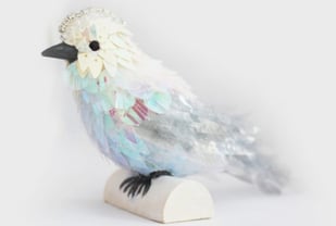 Después de pasar un rato compartiendo con el ave y su sentimiento, el silencio vuelve al ave haciendo que la señora se desanime un poco. Finalmente el ave emprende vuelo dejando caer una pluma mitad color azul rey y mitad color rojo rubí. La señora ve como se aleja y de nuevo la soledad vuelve a ella. Recoge la pluma y decide vaciar una caja de fósforos para guardar en ella la apreciada pluma.